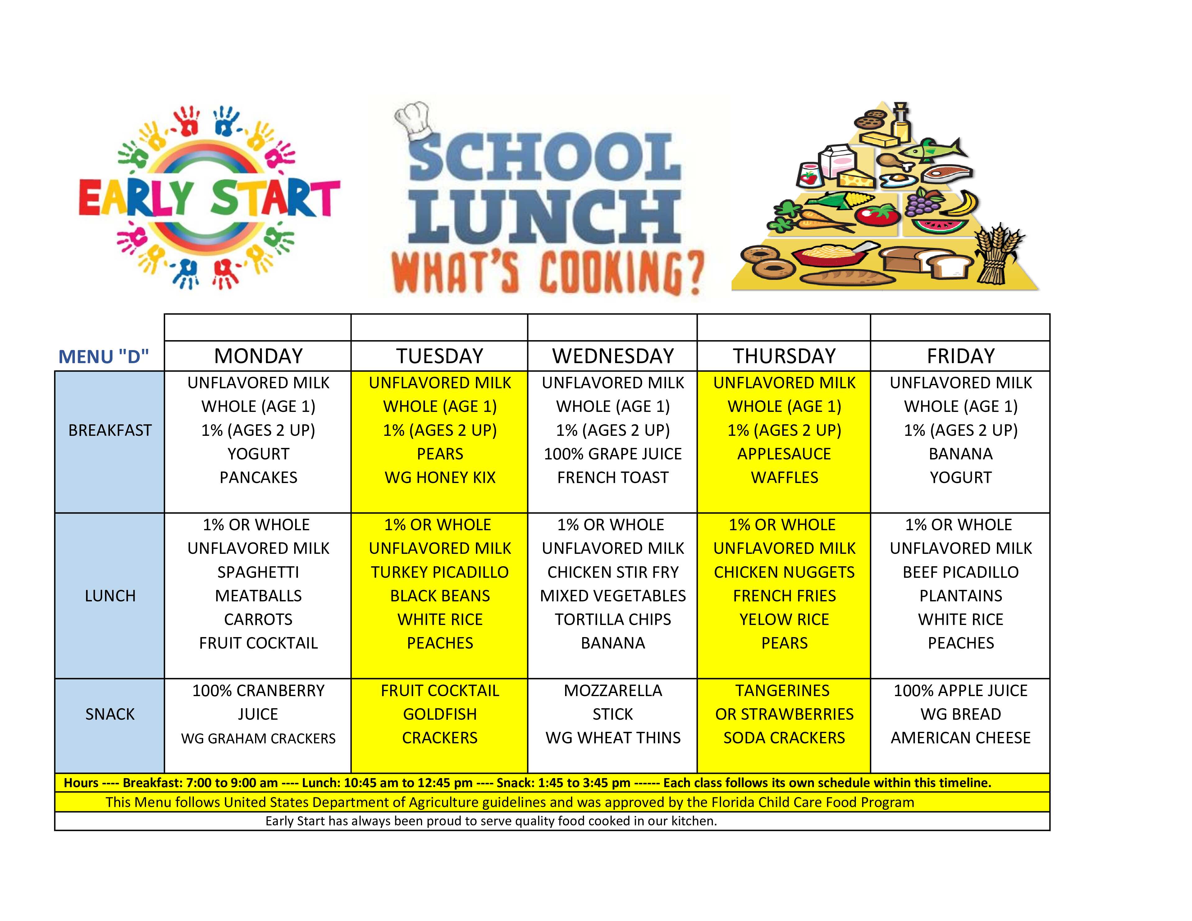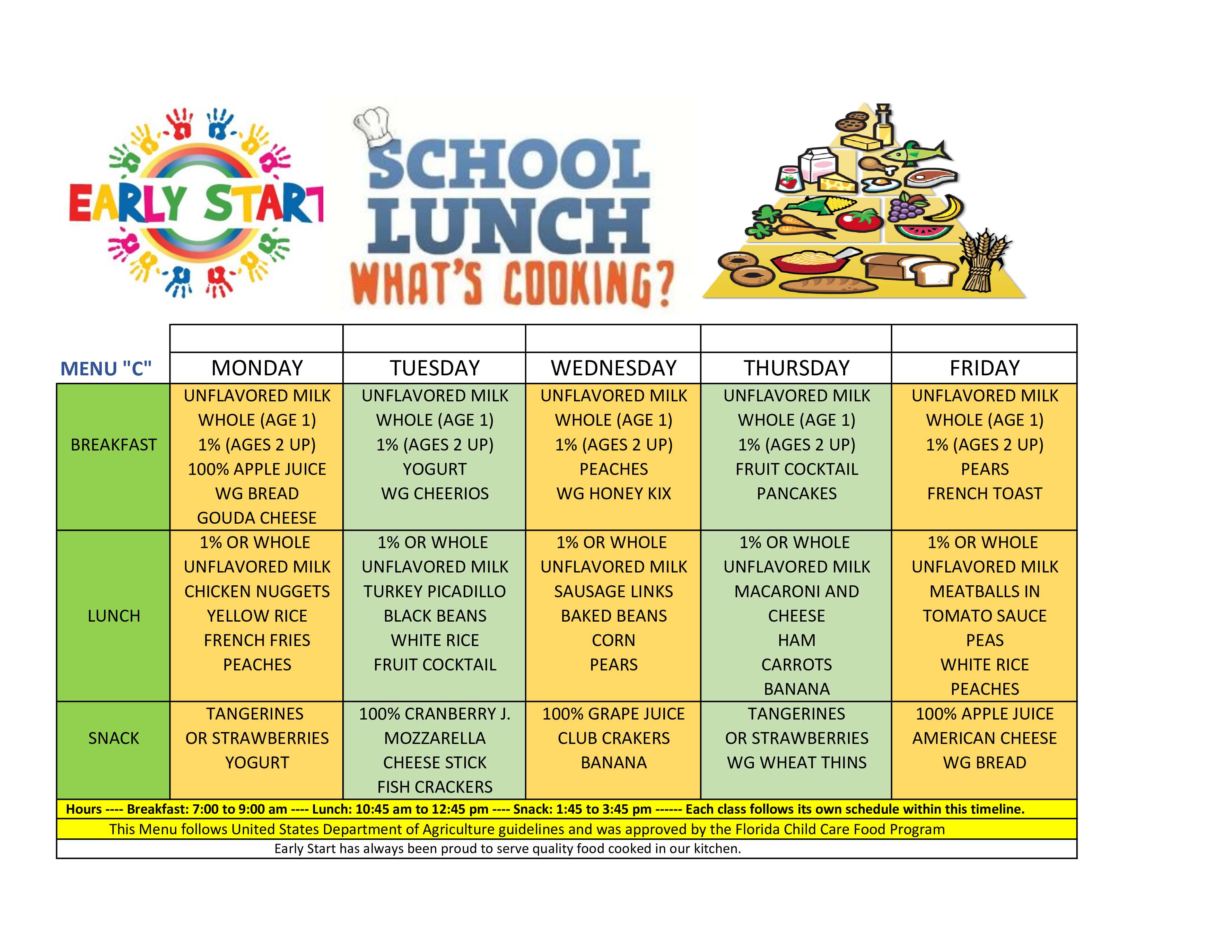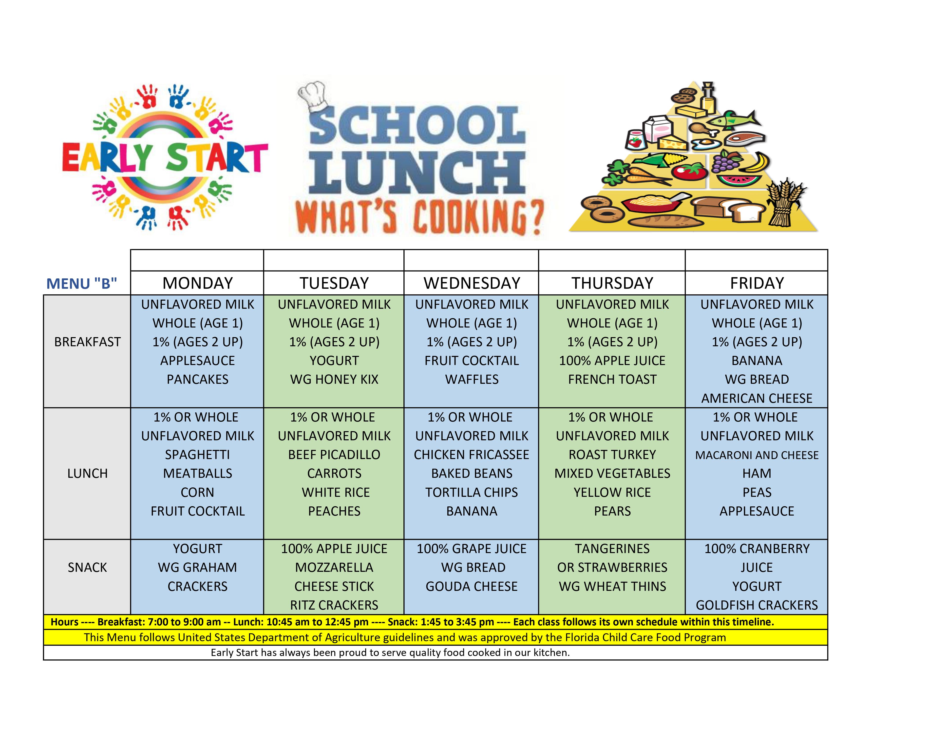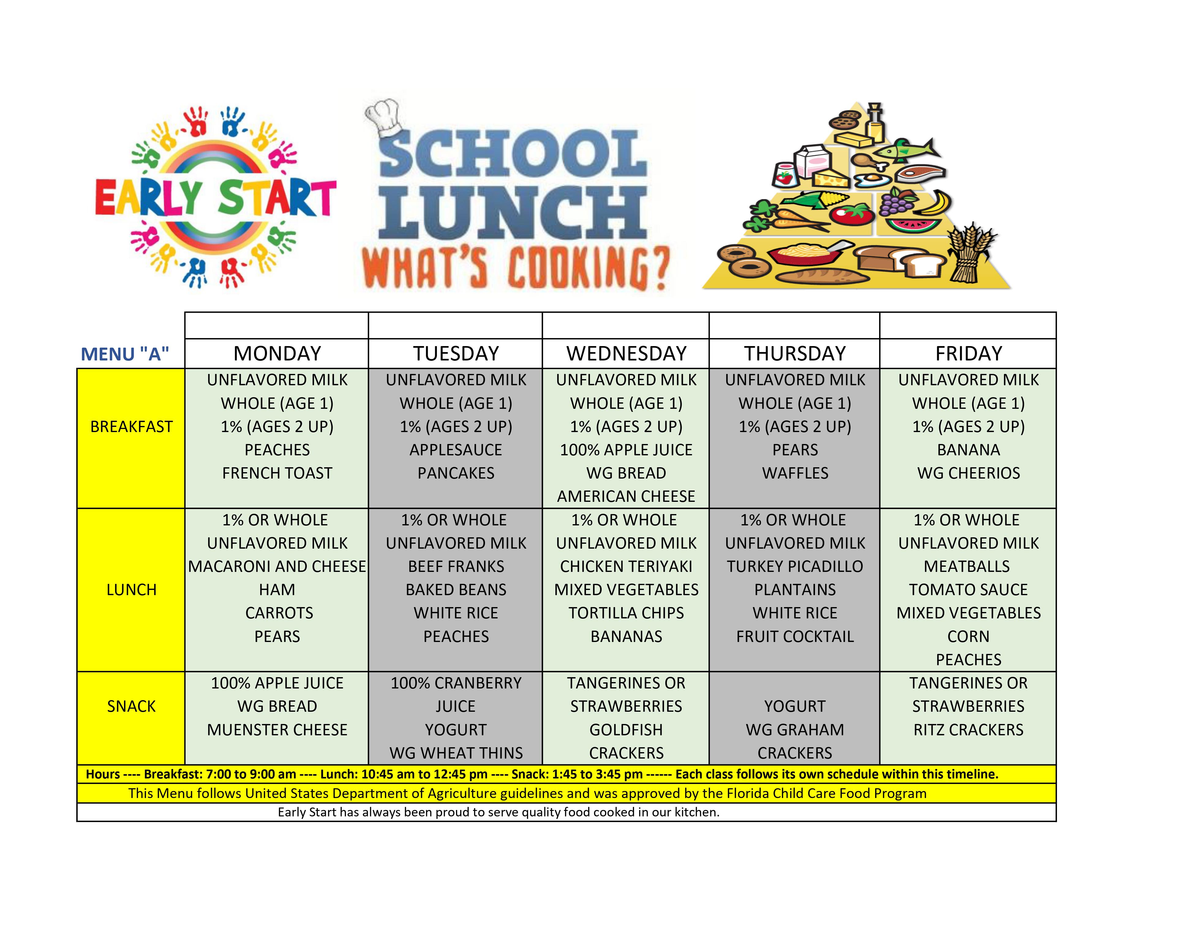 We have four USDA approved Menus that cycle every four weeks.